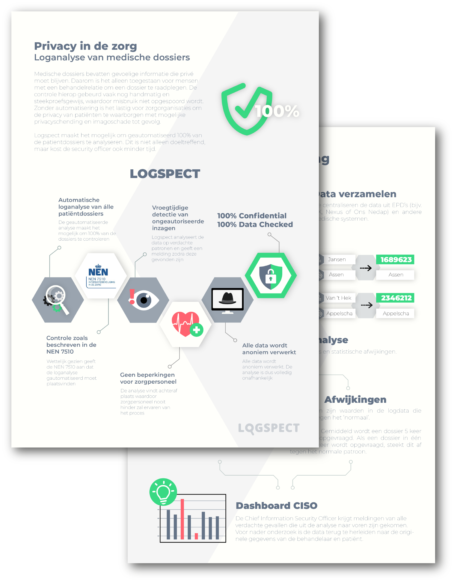 In het normenkader NEN7510 wordt de voorkeur gegeven aan geautomatiseerde analyse van patiëntdossiers. Logspect is de eerste tool die dit mogelijk maakt. Geen handmatige steekproeven meer, maar een geautomatiseerde analyse van alle loggegevens.